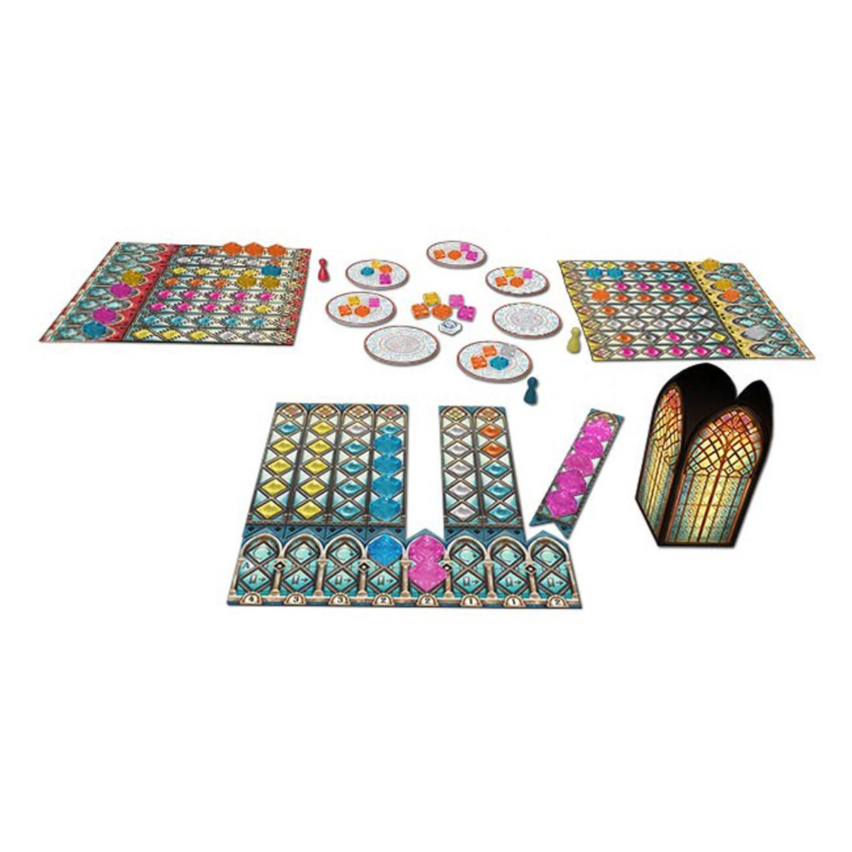 Wat ook direct opvalt, zijn de luxe spelmaterialen. De glas-in-loodtegels zijn gemaakt van stevig, kleurrijk kunststof en zorgen voor een speels maar elegant uiterlijk. Het raamwerk waarin je de tegels plaatst, geeft het spel een driedimensionaal en uniek karakter. Net als bij de andere Azul-titels draagt dit bij aan de beleving en maakt het spelen een visueel feest.