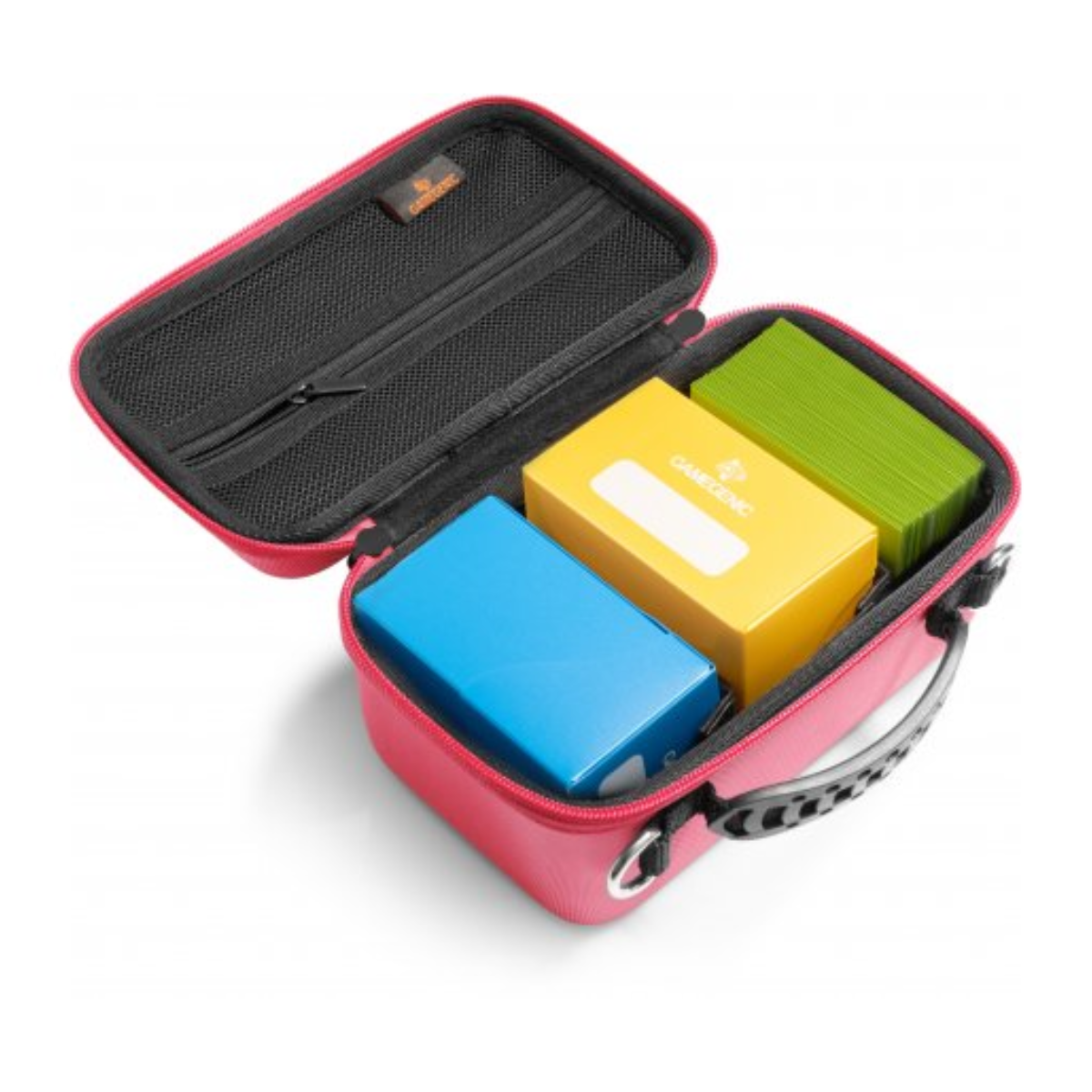 Gamegenic Card Shell 250+ Pink is een compacte draagcase voor tot 250+ double sleeved kaarten, met rits, dividers en een accessoiresvak voor tokens en dobbelstenen. Ideaal als je meerdere decks veilig wilt vervoeren naar toernooien, events of een game night.