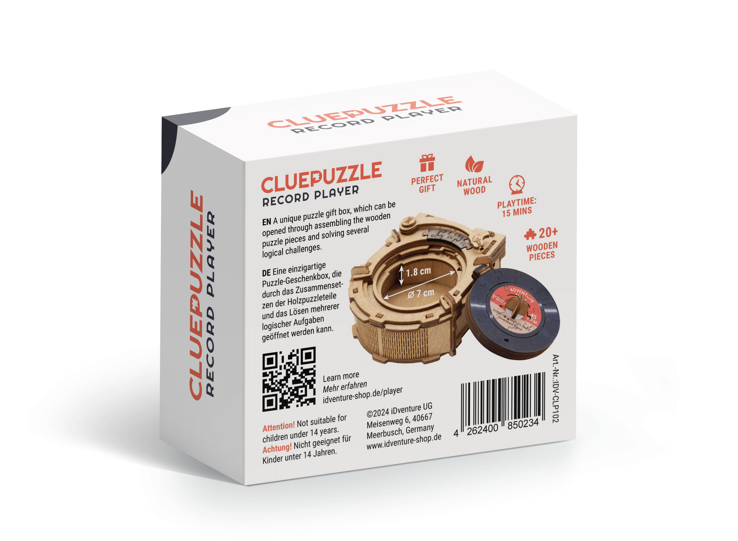 De IDventure – CluePuzzle Record Player is een innovatieve en stijlvolle puzzeldoos die perfect is als cadeau voor puzzelliefhebbers en muziekliefhebbers. Deze unieke geschenkdoos combineert een breinbreker met het nostalgische ontwerp van een platenspeler. Los de puzzels op, zet de mechanische onderdelen in elkaar en ontgrendel de doos om de verborgen verrassing binnenin te onthullen.