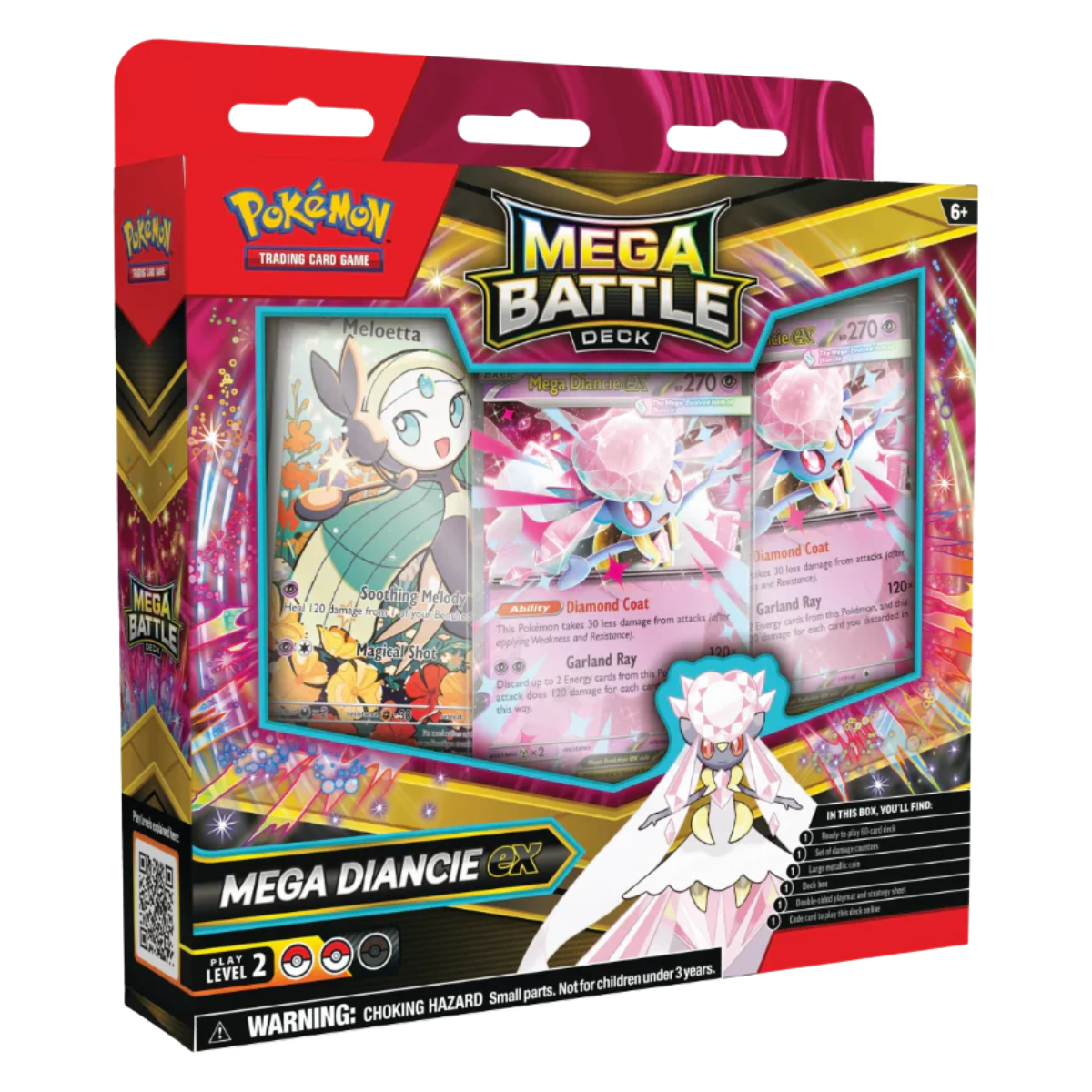 Klaar om direct te spelen met een krachtige deckkeuze uit de nieuwste lijn? De Pokémon Mega Battle Decks brengen Mega Gengar ex en Mega Diancie ex naar je tafel met een compleet speelklare 60-kaarten deck, accessoires en strategiekaarten. Kies jouw stijl en ga meteen de strijd aan.