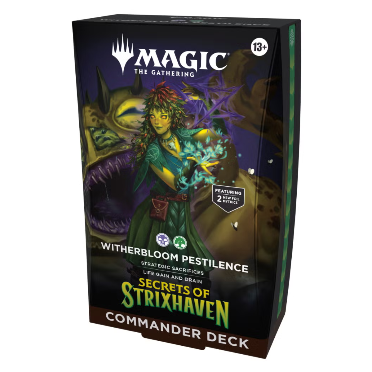 Secrets of Strixhaven Commander Deck is een kant en klare Commander deck uit de MTG Strixhaven wereld, perfect als je direct wil spelen of je collectie wil uitbreiden. Je krijgt een volledig 100 kaarten deck met foil commanders, een foil etched display commander en accessoires zoals tokens, life tracker en deckbox. Ideaal voor Commander avonden, upgrades en natuurlijk ook gewoon om te openen als fan van Strixhaven.