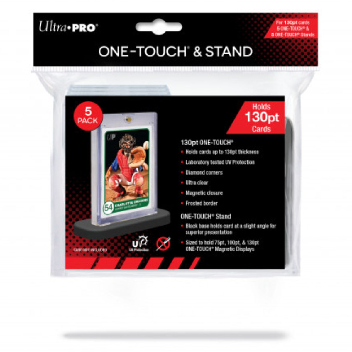 Ultra pro one touch 35pt 5xis een set van vijf magnetische houders mét vijf standaards om je favoriete kaarten veilig te bewaren én strak te presenteren. Dankzij UV werende materialen, stevige sluiting en hoekbescherming blijft je kaart netjes, zowel in de kast als op je bureau. Ideaal voor Pokémon, One Piece, Lorcana, Magic en sportkaarten.